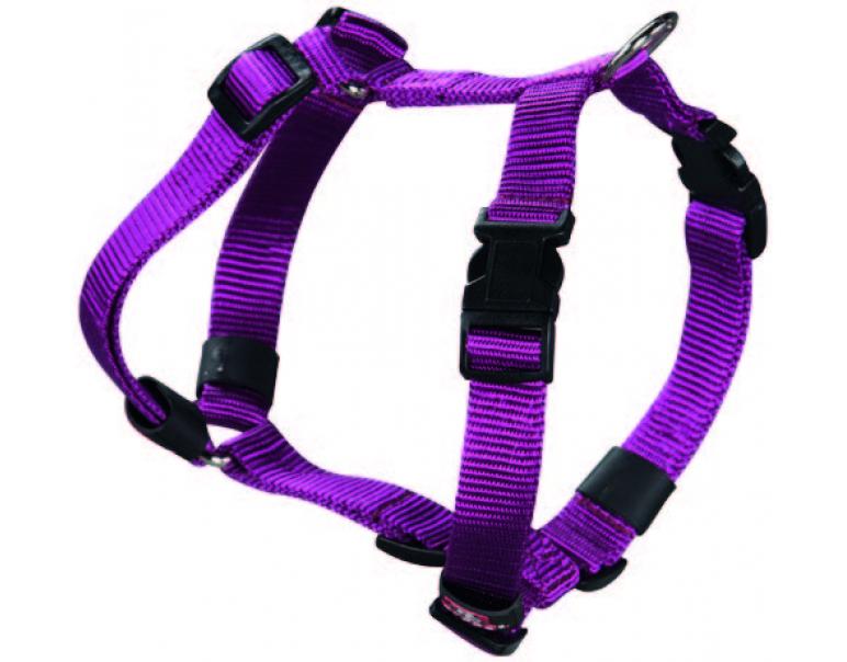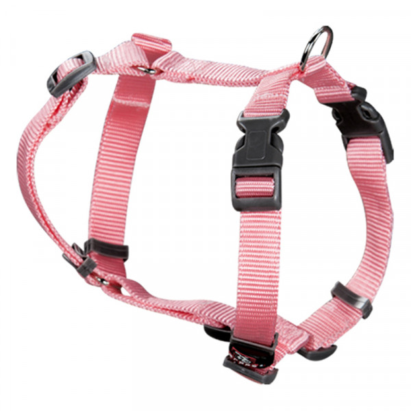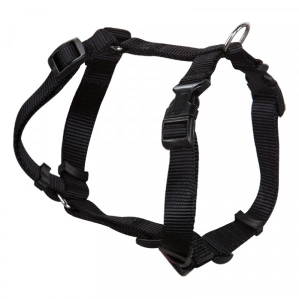 Talla. 25 – Arnés de nylon básico regulable, cuello 38-57cm, cuerpo 55-75cm. Sistema de amarre con clip plástico. Diferentes tallas y colores.