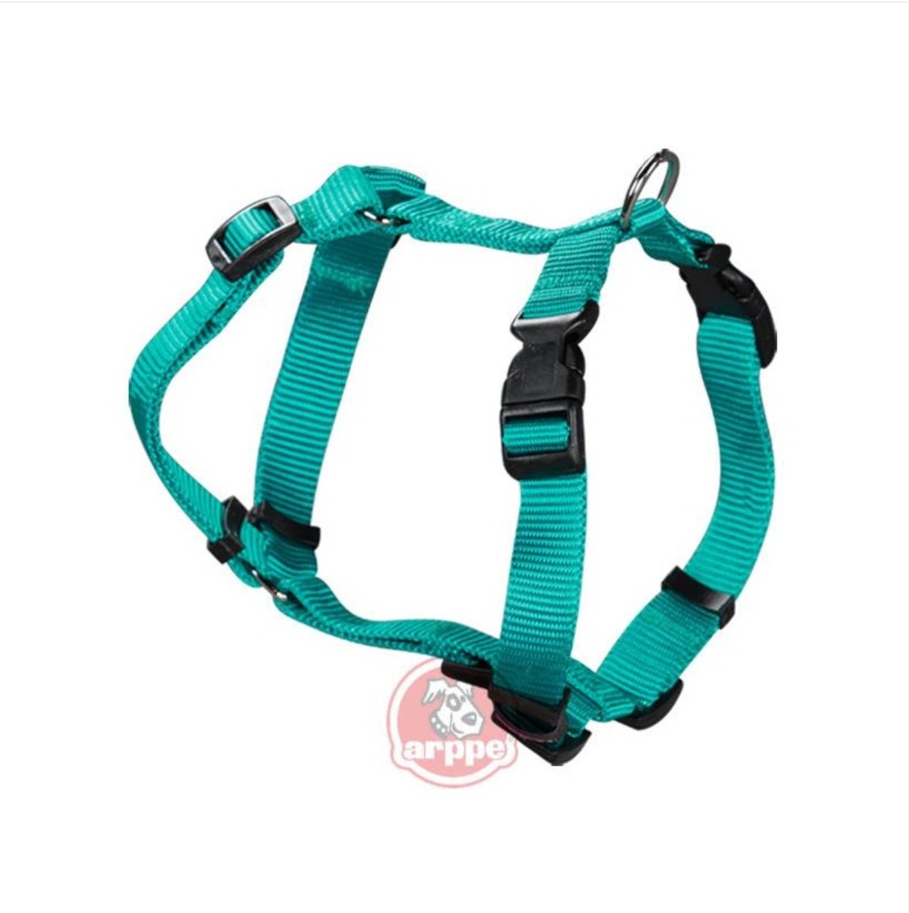 Talla. 05 – Arnés de nylon básico regulable, cuello 23-25cm, cuerpo 25-32.5cm. Sistema de amarre con clip plástico. Diferentes tallas y colores.
