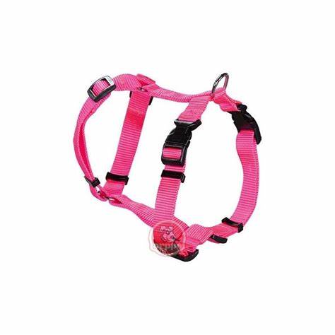 Talla. 10 – Arnés de nylon básico regulable, cuello 18,5-25,5cm, cuerpo 25,5-33.5cm. Sistema de amarre con clip plástico. Diferentes tallas y colores.