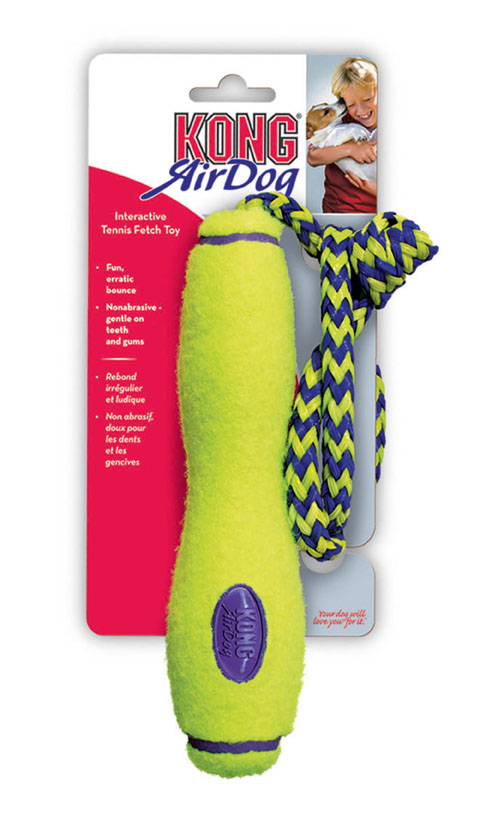 El kong Airdog Fetch Stick viene con una cuerda, práctico para lanzarlo o para que tu perro se entretenga con ella. Flota en el agua, es resistente y está hecho de fieltro no abrasivo, no daña la dentadura de tu mascota. No hace ruido. Pasará momentos divertidos, le ayudará a la higiene buco-dental, le ayudará a saciar sus ancias de morder y reforzará aún más el vínculo entre ambos.
